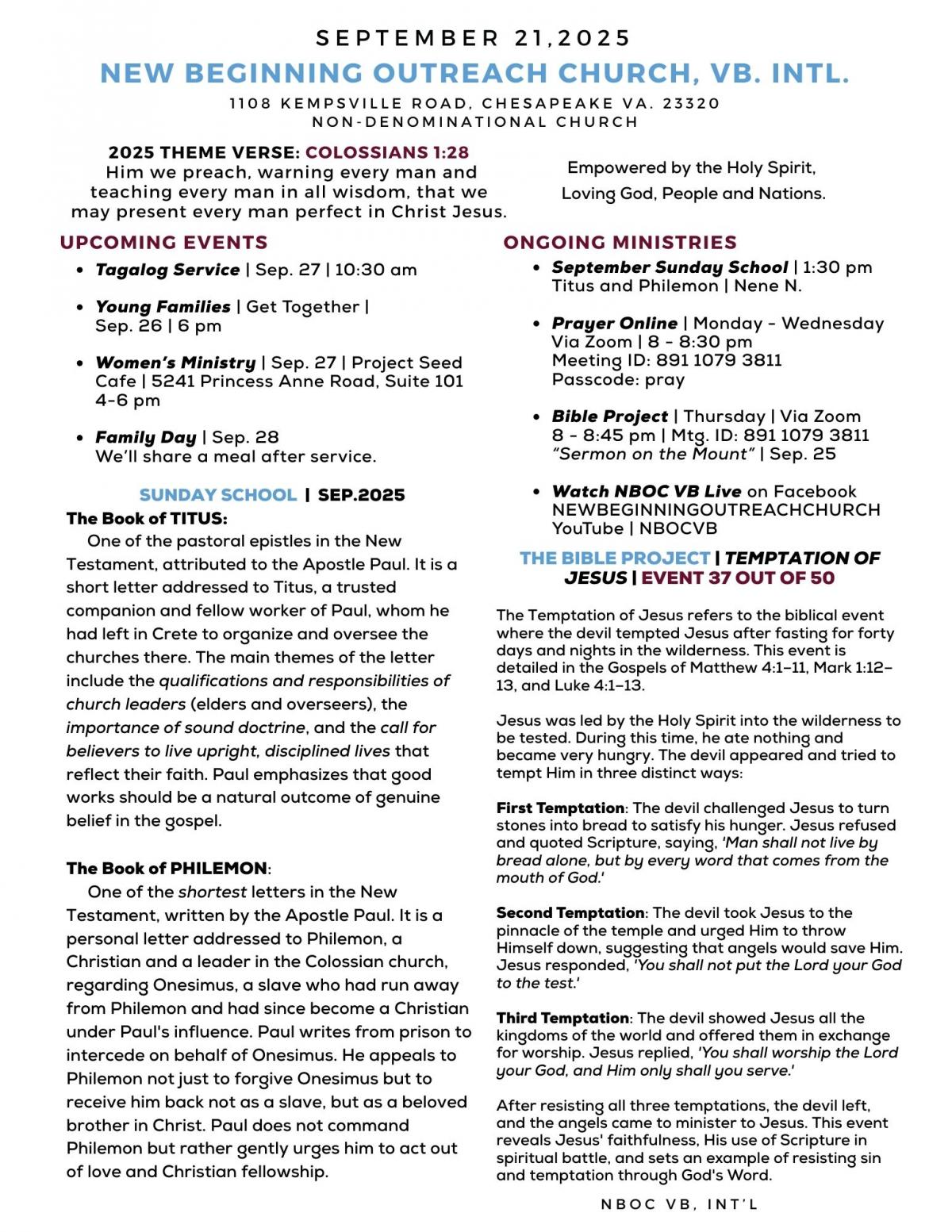 SUNDAY BULLETIN | SEPT. 14, 2025