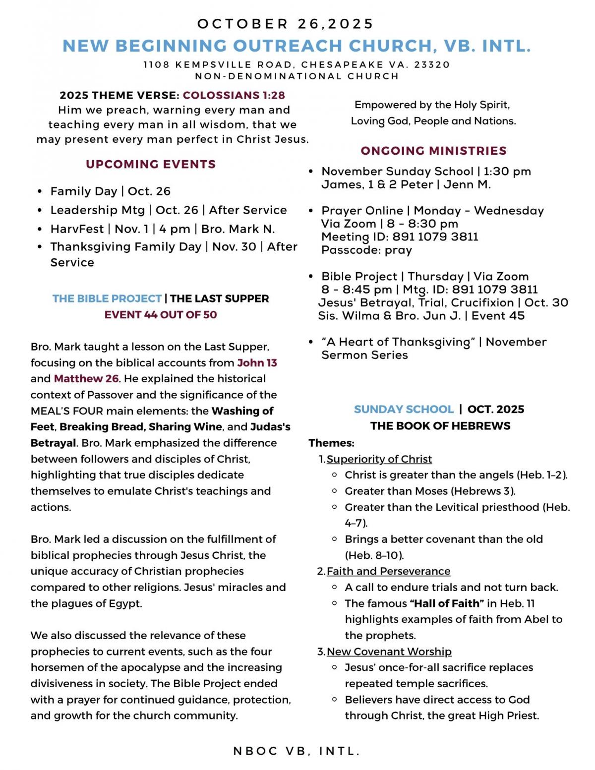 SUNDAY BULLETIN | OCTOBER 26, 2025