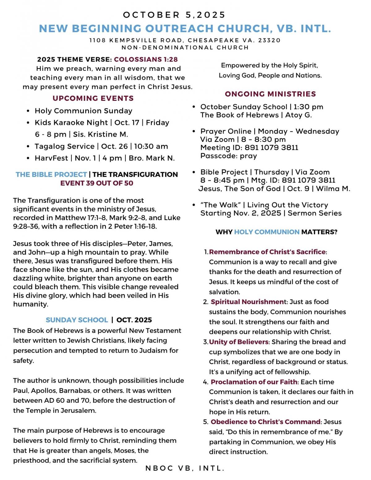 Church Bulletin | October 05, 2025